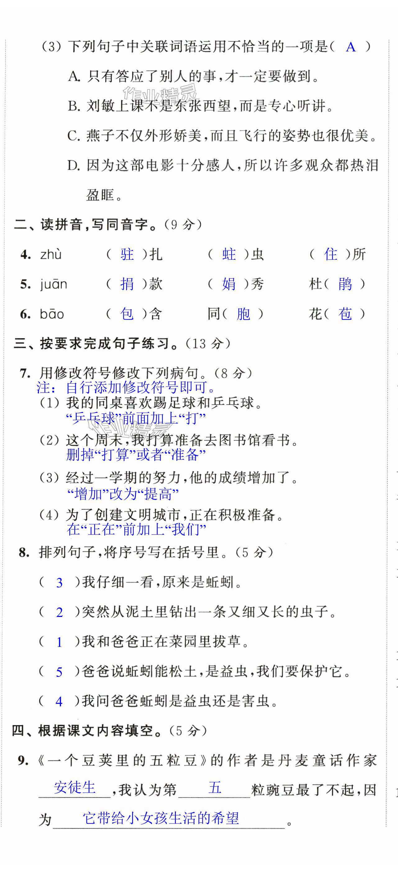 注:目前有些书本章节名称可能整理的还不是很完善,但都是按照顺序排列的,请同学们按照顺序仔细查找。练习册 2024年阳光互动绿色成长空间四年级语文上册人教版提优版 答案主要是用来给同学们做完题方便对答案用的,请勿直接抄袭。