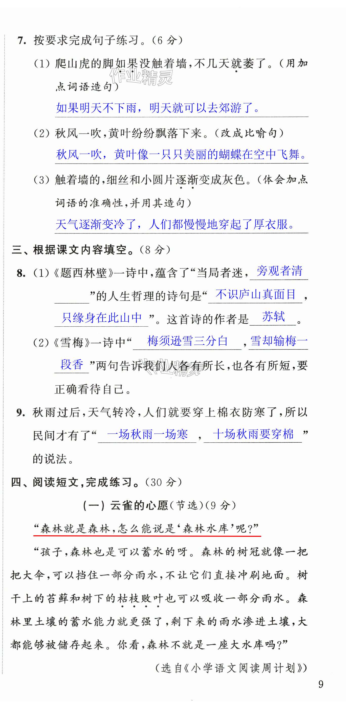 注:目前有些书本章节名称可能整理的还不是很完善,但都是按照顺序排列的,请同学们按照顺序仔细查找。练习册 2024年阳光互动绿色成长空间四年级语文上册人教版提优版 答案主要是用来给同学们做完题方便对答案用的,请勿直接抄袭。