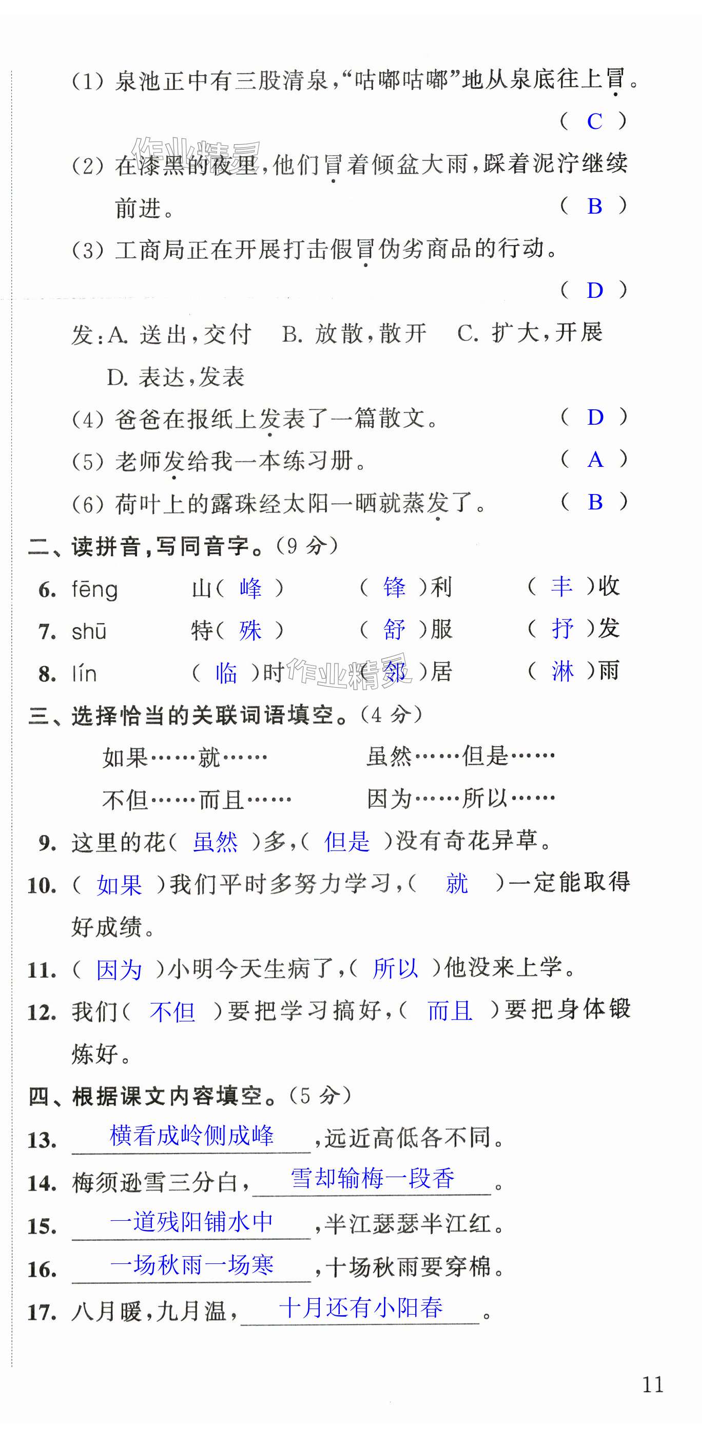 注:目前有些书本章节名称可能整理的还不是很完善,但都是按照顺序排列的,请同学们按照顺序仔细查找。练习册 2024年阳光互动绿色成长空间四年级语文上册人教版提优版 答案主要是用来给同学们做完题方便对答案用的,请勿直接抄袭。