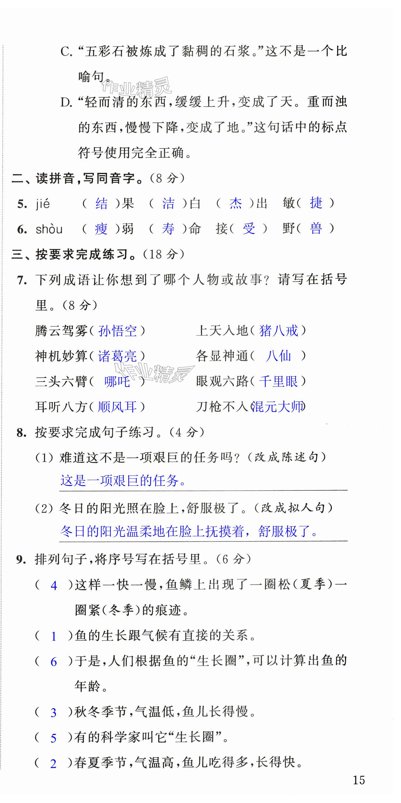 注:目前有些书本章节名称可能整理的还不是很完善,但都是按照顺序排列的,请同学们按照顺序仔细查找。练习册 2024年阳光互动绿色成长空间四年级语文上册人教版提优版 答案主要是用来给同学们做完题方便对答案用的,请勿直接抄袭。