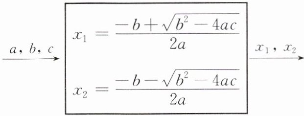 我们把求解一元二次方程$ax^{2}+bx+c= 0(a≠0)$的过程看成是一个黑箱模型,输入的量是a、b、c三个系数,而输出的是该方程的两个根$x_{1}和x_{2}$.若a、b、c分别输入1、1、-1,1、2、1,1、1、2三组数,则输出的结果分别是什么?