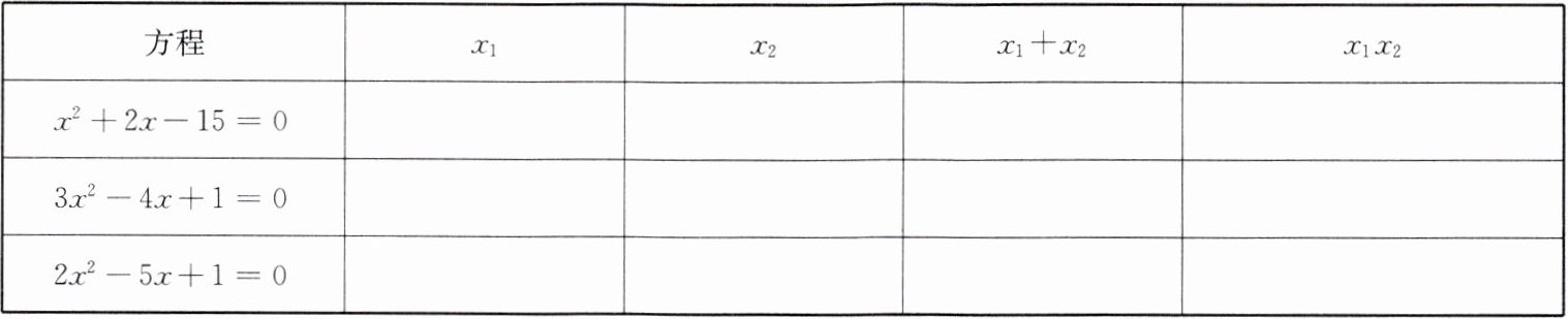 |方程|$x_{1}$|$x_{2}$|$x_{1}+x_{2}$|$x_{1}x_{2}$|