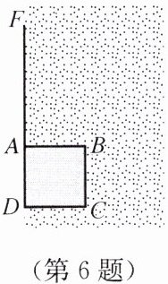 6. 如图,在小路DF的右侧是一片草地,紧靠小路建有一正方形小屋ABCD,现用一根长为6m的绳子一端系住牛鼻,另一端系在A处.已知正方形小屋的边长为3m,那么这头牛最多能吃到多大面积草地上的草?请画出示意图.