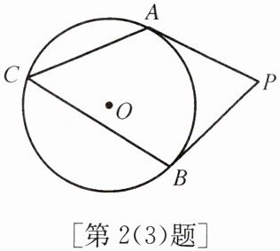 (3)如图,PA、PB分别切⊙O于点A、B,点C在⊙O上,∠P= 70°,则∠C等于( ).