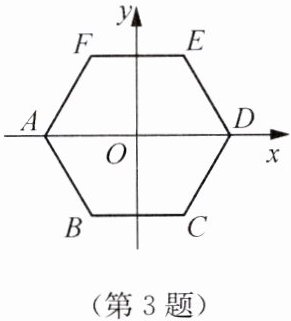 3. 如图,求中心为原点O,顶点A、D在x轴上,半径为2 cm的正六边形ABCDEF的各个顶点的坐标.