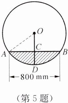 5. 如图,直径为1000mm的圆柱形水管有积水(阴影部分),水面的宽度AB为800mm.求水的最大深度CD.