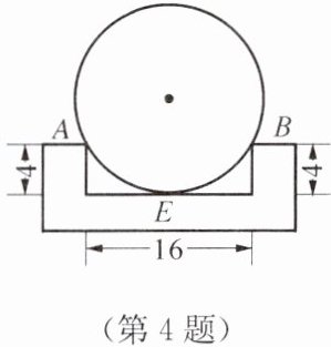 4. 为检测生产的一种铁球的大小是否符合要求,工人设计了一个工件槽,工件槽的两个底角均为$90^{\circ}$,尺寸如图所示(单位:cm).将形状规则的铁球放入槽内,若同时具有图中的A、B、E三个接触点,则该球大小符合要求.请结合图中数据,计算符合要求的铁球直径.