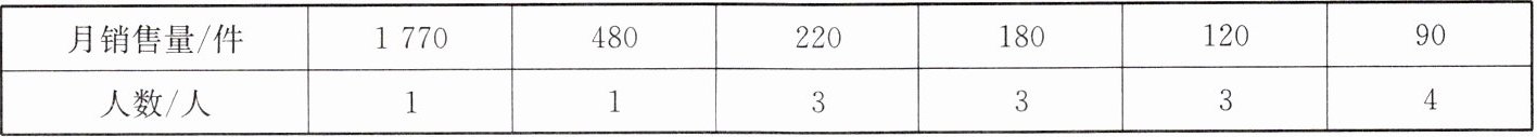 为13人,不符合题意.如果以中位数180件作为月销售目标时,月销售量大于等于180件的