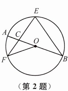 2. 如图,AB是⊙O的直径,EF、EB是⊙O的弦,且EF= EB,EF与AB交于点C,连接OF,若∠AOF= 40°,则∠F的度数是( )