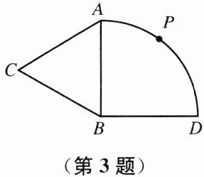 3. 如图,$\overset{\frown}{AD}$是以等边三角形ABC一边AB为半径的四分之一圆周,P为$\overset{\frown}{AD}$上的任意一点.若AC= 5,连接BP、AP,则四边形ACBP周长的最大值是( )