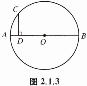 例2 如图2.1.3,AB是⊙O的直径,点C在⊙O上,CD⊥AB,垂足为D,且AD= 1,CD= 3.求直径AB的长.