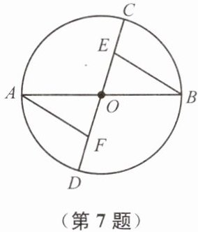 7. 如图,AB、CD为⊙O的两条直径,点E、F在直径CD上,且CE= DF.