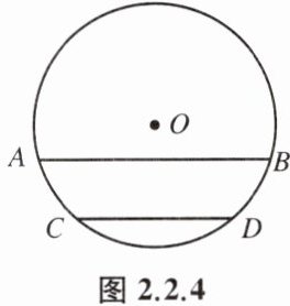 例2 如图2.2.4,AB、CD是⊙O的弦,且AB//CD.$\widehat{AC}与\widehat{BD}$相等吗?为什么?