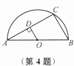 4. 如图,AB是半圆O的直径,OD⊥AC,垂足为D,OD= 2,则弦BC的长为______.