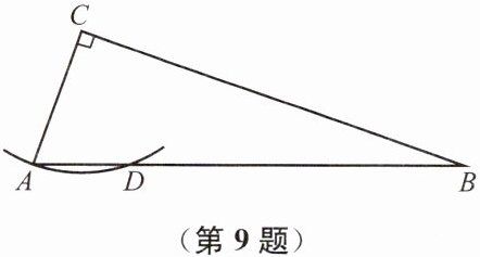 9. 如图,在Rt△ABC中,∠ACB= 90°,AC= 1,BC= 2$\sqrt{2}$,以点C为圆心,CA长为半径画弧交斜边AB于点A、D,求BD的长.