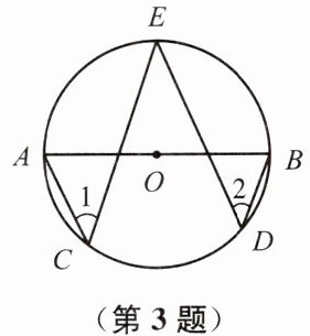 3. 如图,AB是⊙O的直径,C、D、E都是⊙O上的点,则∠1+∠2= ______.