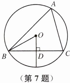 7. 如图,OD⊥BC,垂足为D,∠BOD= 62°.求∠A的度数.