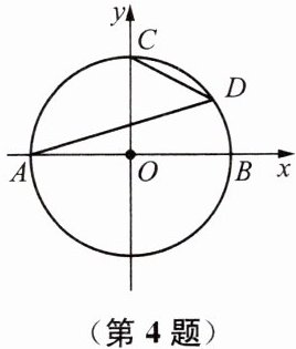 4. 如图,以原点O为圆心的圆交x轴于A、B两点,交y轴的正半轴于点C,D为第一象限内⊙O上的一点,若∠DAB= 20°,则∠OCD= ______.