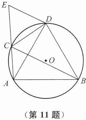 11. 如图,⊙O是△ABC的外接圆,D是$\overset{\frown}{ACB}$的中点,DE//BC交AC的延长线于点E,AE= 10,∠ACB= 60°.求BC的长.