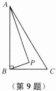 9. 如图,在Rt△ABC中,AB⊥BC,AB= 6,BC= 4,P是△ABC内部的一个动点,且满足∠PAB= ∠PBC,则线段CP长的最小值为( )