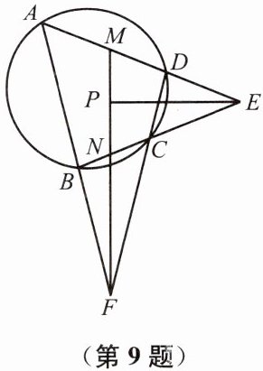 9. 已知:如图,圆内接四边形ABCD的两组对边的延长线分别交于点E、F,∠AEB、∠AFD的平分线交于点P.求证:PE⊥PF.