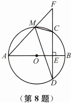 8. 已知:如图,⊙O的直径AB垂直于弦CD,垂足为E,F为DC延长线上的一点,连接AF交⊙O于点M.求证:∠AMD= ∠FMC.