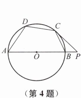 4. 如图,四边形ABCD内接于$\odot O$,AB是$\odot O$的直径,过点C的切线与AB的延长线交于点P,若$\angle P= 40^\circ$,则$\angle D$的度数为______.