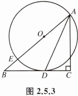 例2 如图2.5.3,在$\triangle ABC$中,$\angle C= 90^\circ$,O是AB上一点,以OA为半径的$\odot O$与BC相切于点D,与AB相交于点E.