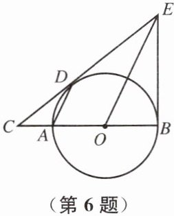 6. 如图,AB为$\odot O$的直径,过圆上一点D作$\odot O$的切线,交BA的延长线于点C,过点O作$OE// AD$,交CD于点E,连接BE.直线BE与$\odot O$相切吗?请说明理由.