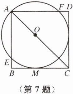 7. 如图,正方形ABCD边长为4,O为对角线AC上一点,以点O为圆心,OA长为半径的$\odot O$与BC相切于点M,与AD、AB分别相交于点E、F.
