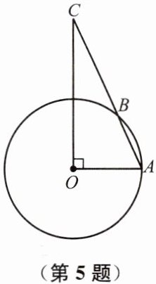 5. 如图,在$\triangle AOC$中,$\angle AOC= 90^\circ$,$\angle C= 15^\circ$,以点O为圆心,AO为半径的圆交AC于点B,$OA= 6$.求$\overset{\frown}{AB}$的长.