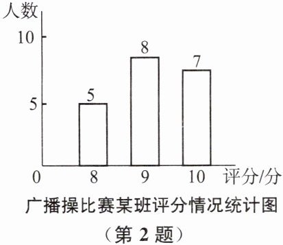 2. 学校进行广播操比赛,如图是20位评委给某班的评分情况统计图,则该班的平均得分是______分.