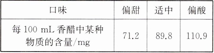 |每100mL香醋中某种物质的含量/mg|71.2|89.8|110.9|
