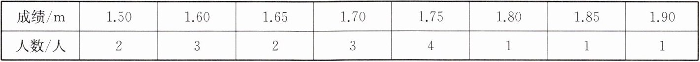 答:这些运动员跳高成绩的中位数是1.70m,众数是1.75m。