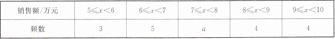 |销售额/万元|5≤x<6|6≤x<7|7≤x<8|8≤x<9|9≤x<10|