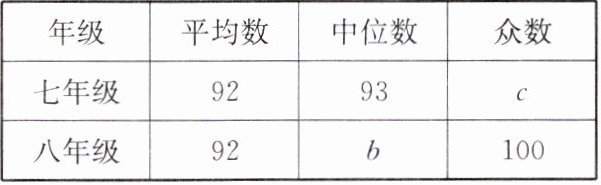 (2)根据以上数据,你认为该校七、八年级中哪个年级学生表现较好?请说明理由.