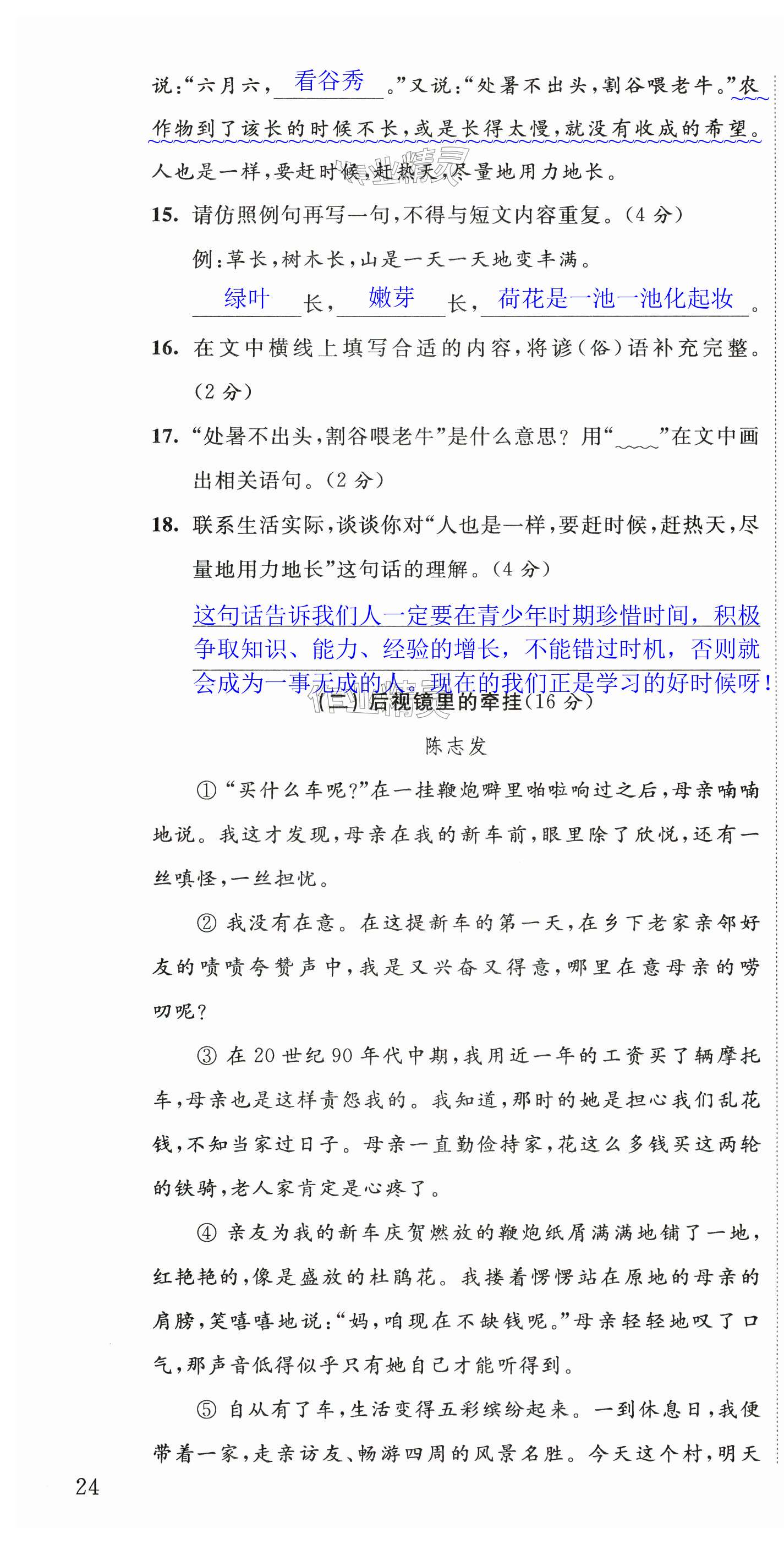 注:目前有些书本章节名称可能整理的还不是很完善,但都是按照顺序排列的,请同学们按照顺序仔细查找。练习册 2024年阳光互动绿色成长空间六年级语文上册人教版提优版 答案主要是用来给同学们做完题方便对答案用的,请勿直接抄袭。