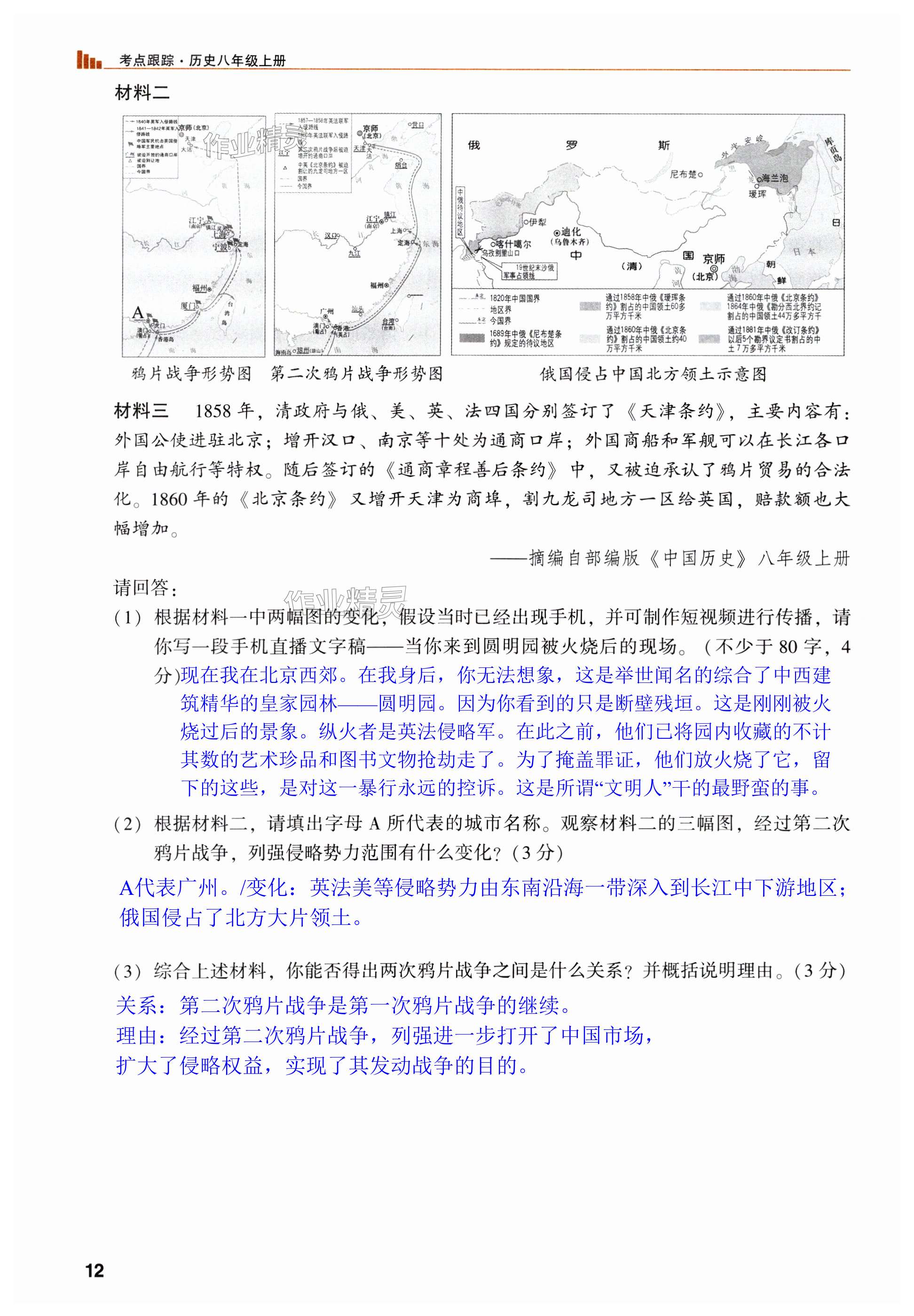 注:目前有些书本章节名称可能整理的还不是很完善,但都是按照顺序排列的,请同学们按照顺序仔细查找。练习册 2024年考点跟踪同步训练八年级历史上册人教版深圳专版 答案主要是用来给同学们做完题方便对答案用的,请勿直接抄袭。