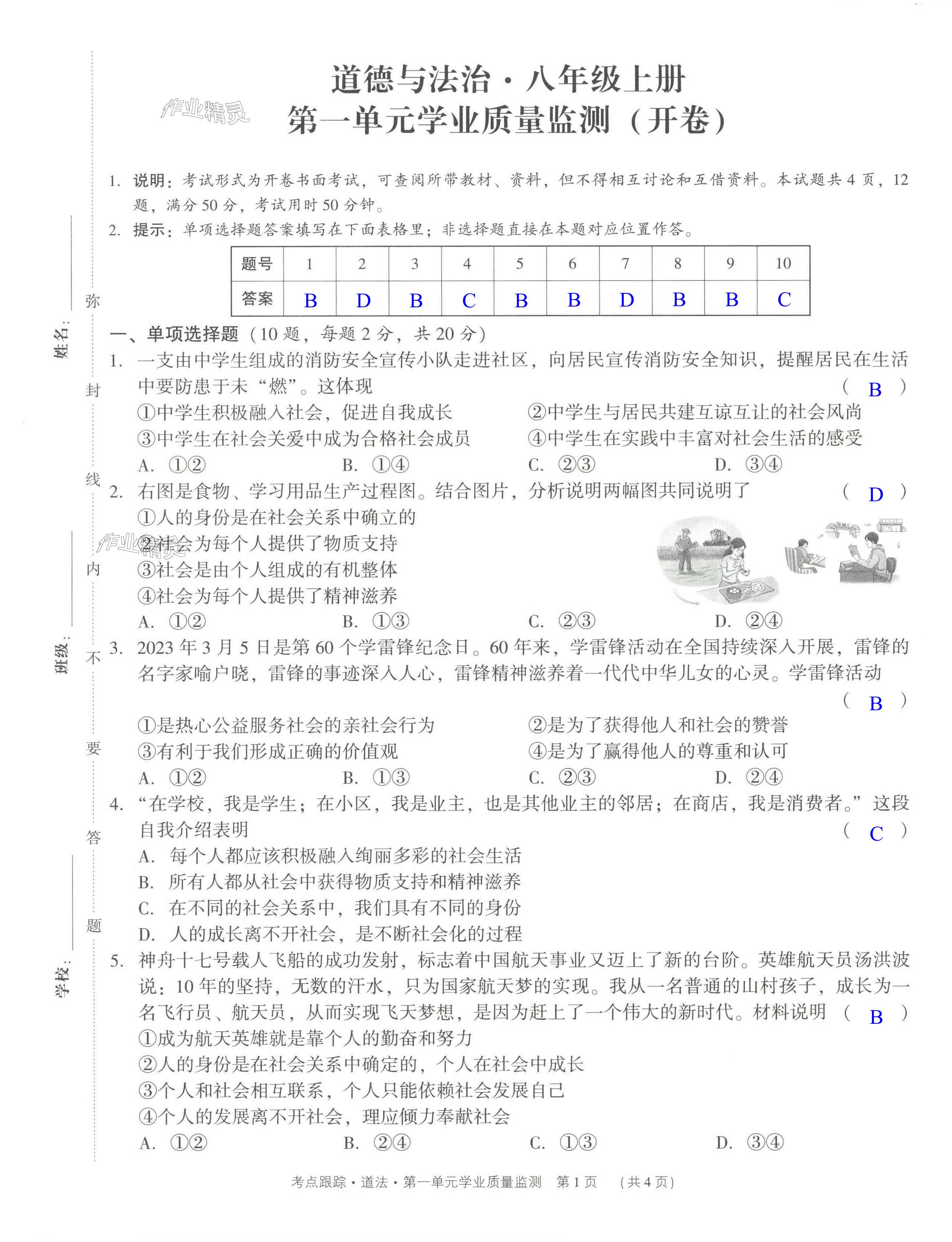 注:目前有些书本章节名称可能整理的还不是很完善,但都是按照顺序排列的,请同学们按照顺序仔细查找。练习册 2024年考点跟踪同步训练八年级道德与法治上册人教版深圳专版 答案主要是用来给同学们做完题方便对答案用的,请勿直接抄袭。