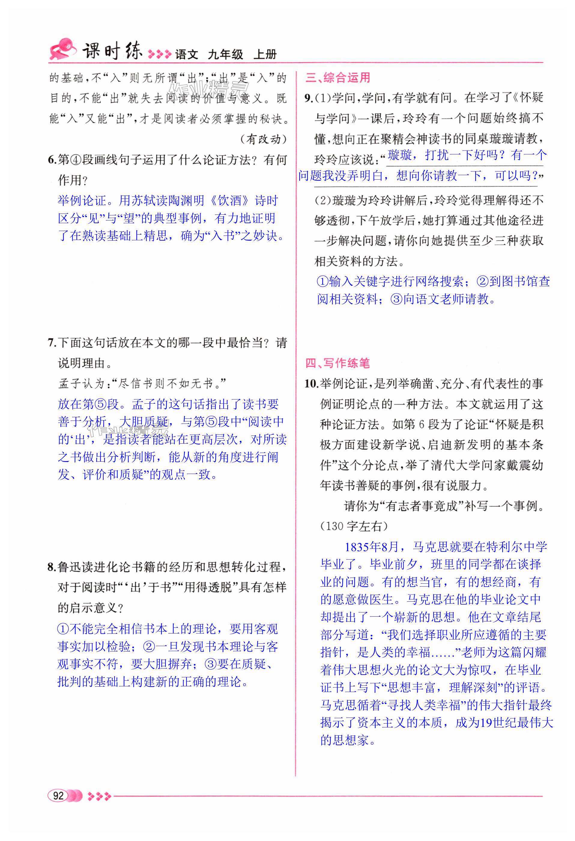注:目前有些书本章节名称可能整理的还不是很完善,但都是按照顺序排列的,请同学们按照顺序仔细查找。练习册 2024年同步导学案课时练九年级语文上册人教版 答案主要是用来给同学们做完题方便对答案用的,请勿直接抄袭。