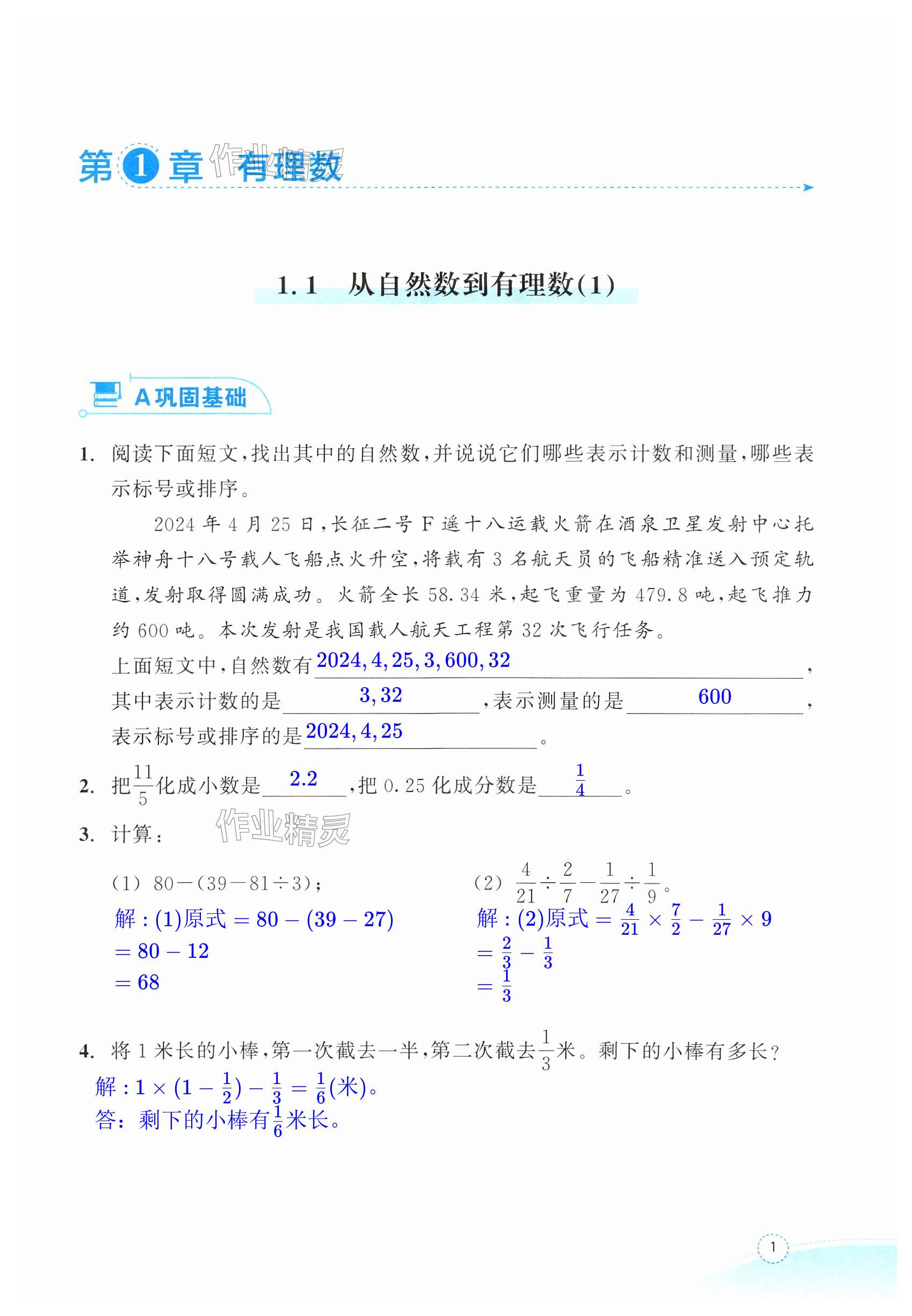 注:目前有些书本章节名称可能整理的还不是很完善,但都是按照顺序排列的,请同学们按照顺序仔细查找。练习册 2024年作业本浙江教育出版社七年级数学上册浙教版 答案主要是用来给同学们做完题方便对答案用的,请勿直接抄袭。