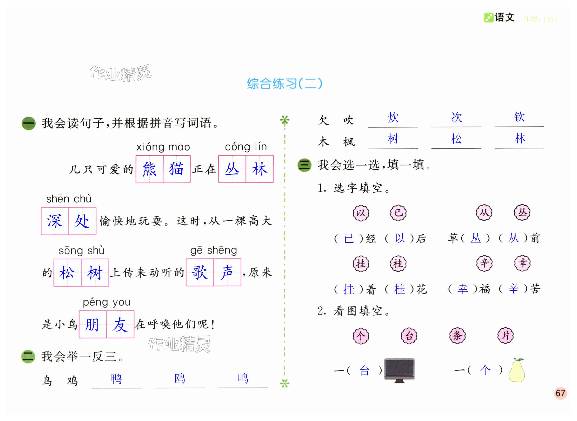 注:目前有些书本章节名称可能整理的还不是很完善,但都是按照顺序排列的,请同学们按照顺序仔细查找。练习册 2024年课堂练习二年级语文上册人教版 答案主要是用来给同学们做完题方便对答案用的,请勿直接抄袭。