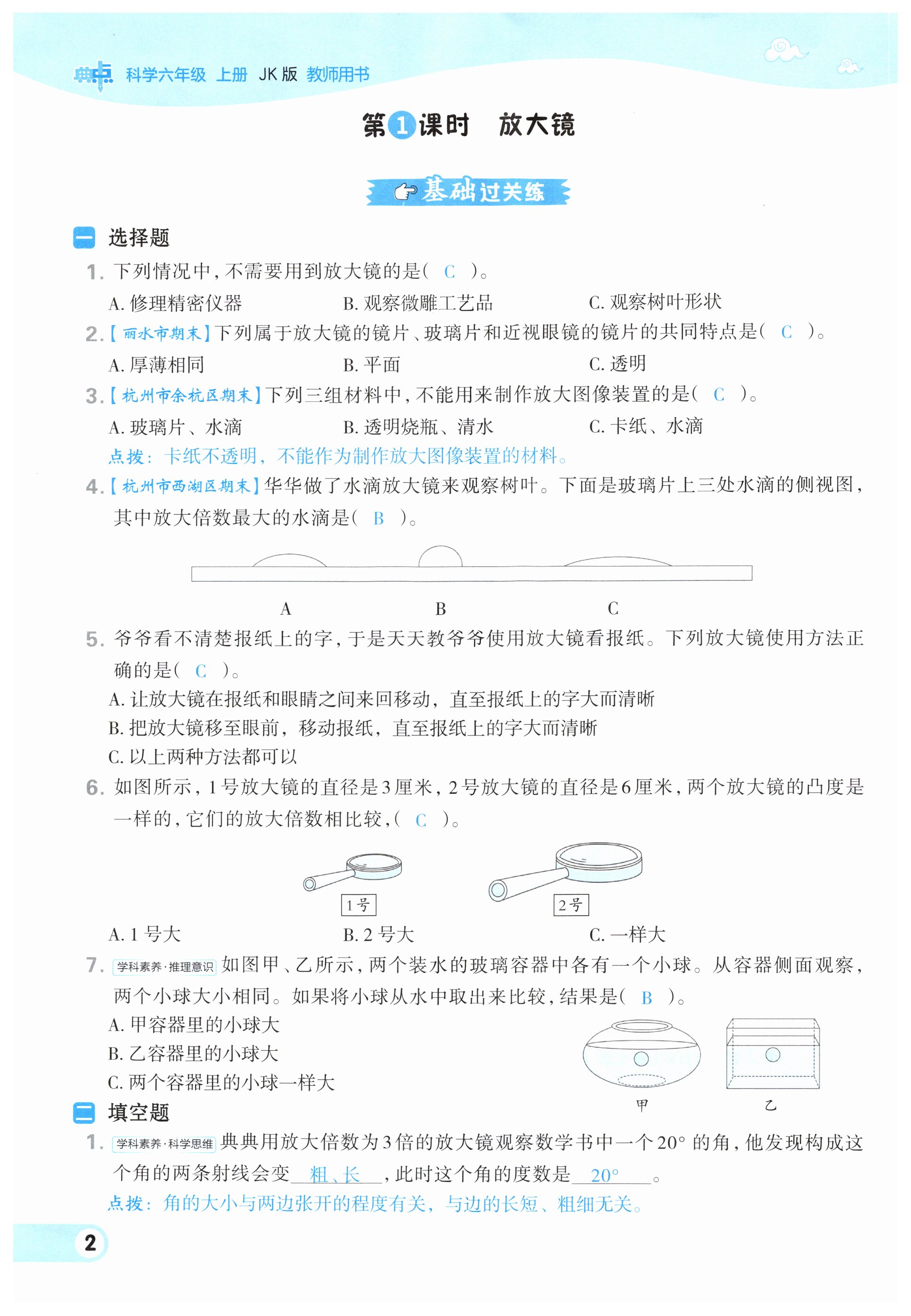 注:目前有些书本章节名称可能整理的还不是很完善,但都是按照顺序排列的,请同学们按照顺序仔细查找。练习册 2024年综合应用创新题典中点六年级科学上册教科版 答案主要是用来给同学们做完题方便对答案用的,请勿直接抄袭。