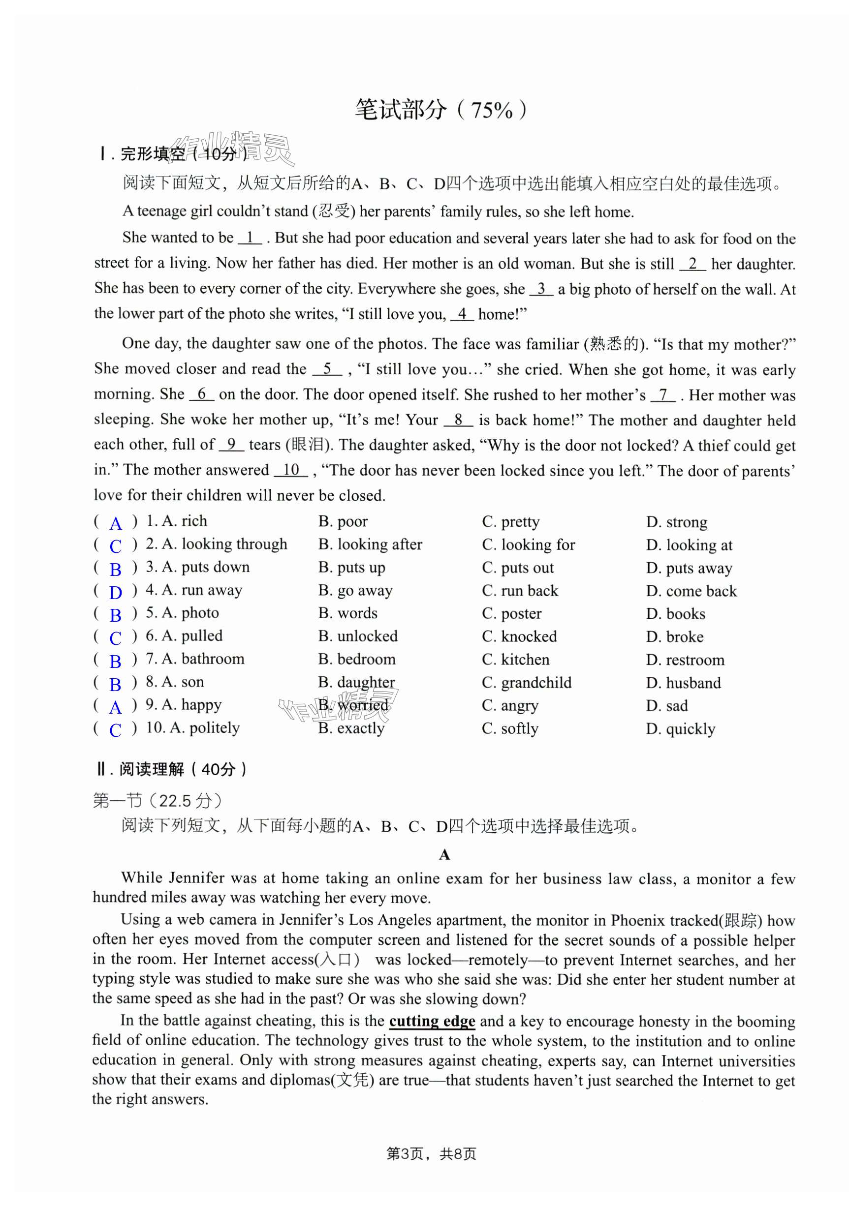 注:目前有些书本章节名称可能整理的还不是很完善,但都是按照顺序排列的,请同学们按照顺序仔细查找。练习册 2024年A加直通车同步练习九年级英语全一册沪教版 答案主要是用来给同学们做完题方便对答案用的,请勿直接抄袭。