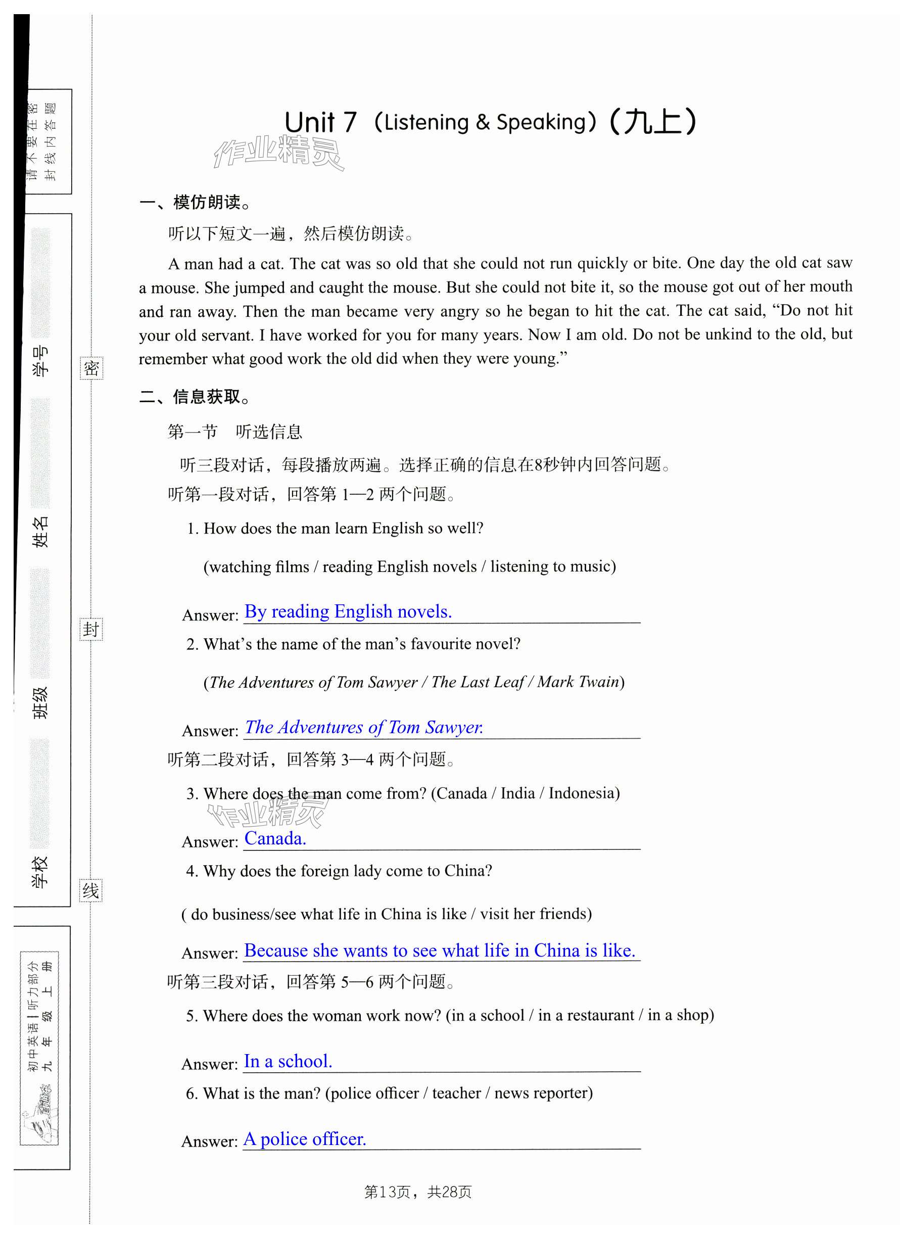 注:目前有些书本章节名称可能整理的还不是很完善,但都是按照顺序排列的,请同学们按照顺序仔细查找。练习册 2024年A加直通车同步练习九年级英语全一册沪教版 答案主要是用来给同学们做完题方便对答案用的,请勿直接抄袭。