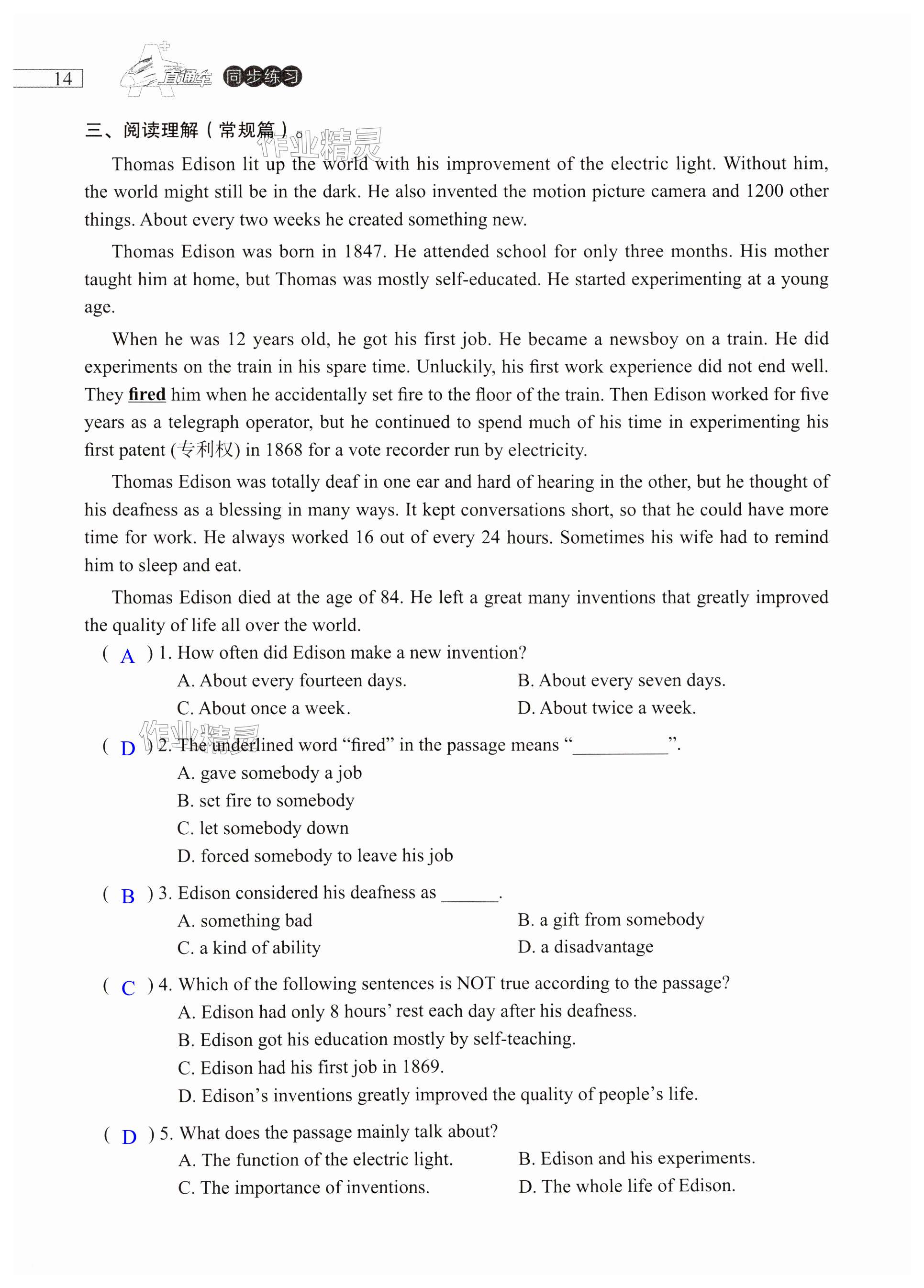 注:目前有些书本章节名称可能整理的还不是很完善,但都是按照顺序排列的,请同学们按照顺序仔细查找。练习册 2024年A加直通车同步练习九年级英语全一册沪教版 答案主要是用来给同学们做完题方便对答案用的,请勿直接抄袭。