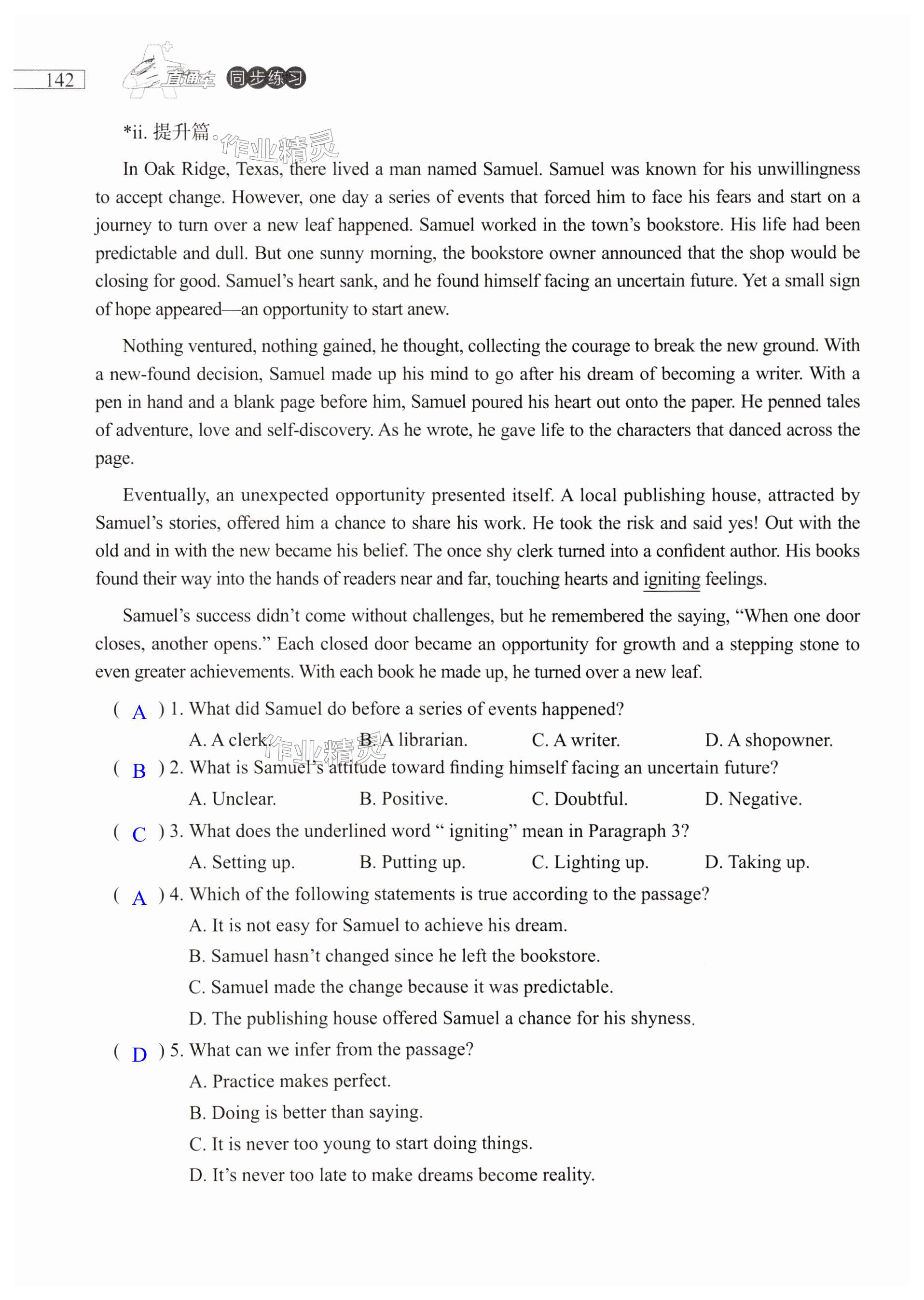 注:目前有些书本章节名称可能整理的还不是很完善,但都是按照顺序排列的,请同学们按照顺序仔细查找。练习册 2024年A加直通车同步练习九年级英语全一册沪教版 答案主要是用来给同学们做完题方便对答案用的,请勿直接抄袭。