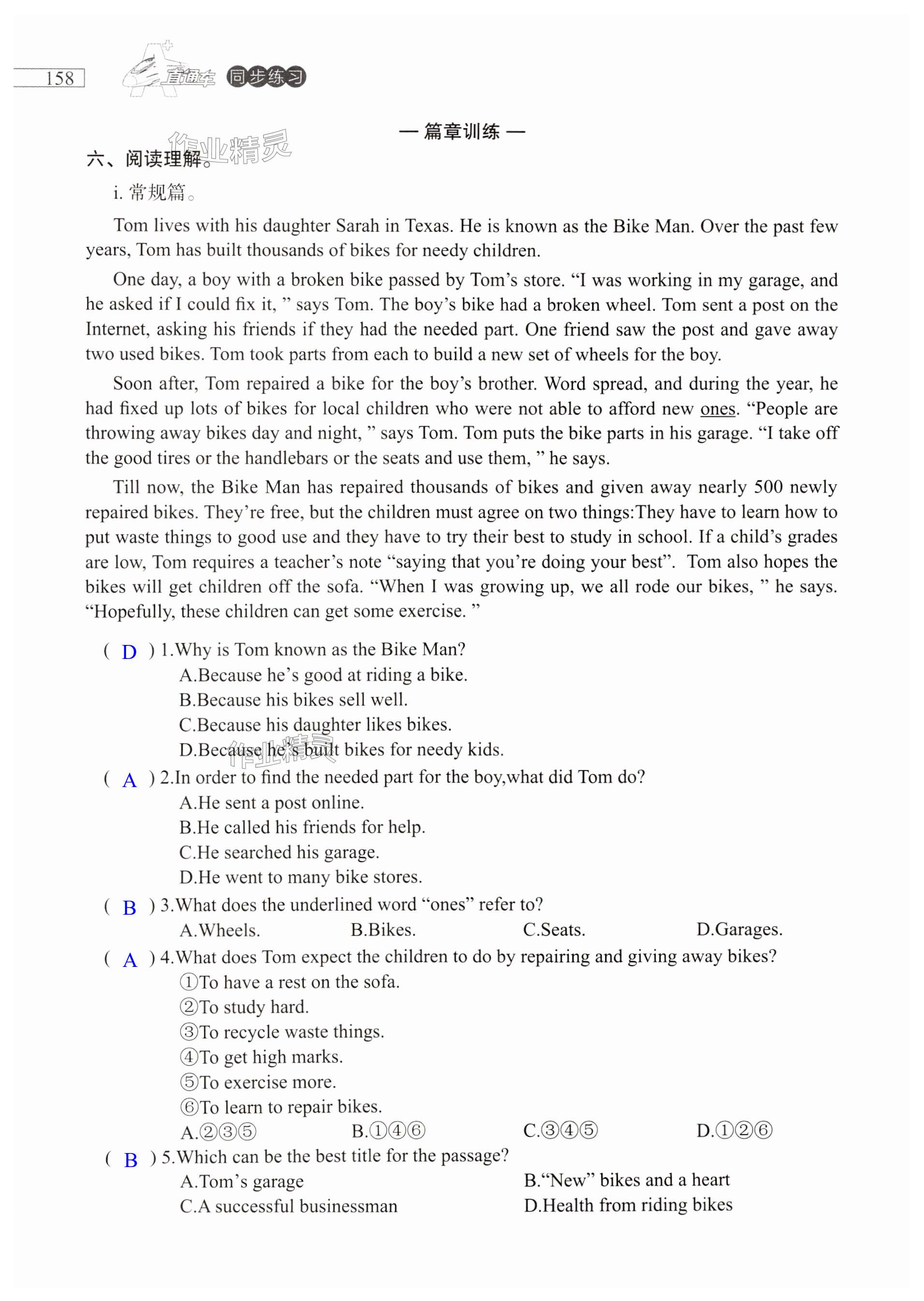 注:目前有些书本章节名称可能整理的还不是很完善,但都是按照顺序排列的,请同学们按照顺序仔细查找。练习册 2024年A加直通车同步练习九年级英语全一册沪教版 答案主要是用来给同学们做完题方便对答案用的,请勿直接抄袭。