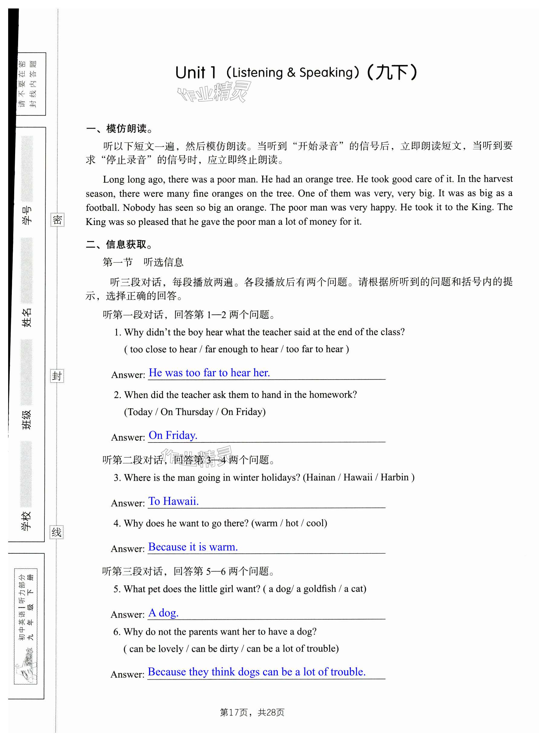 注:目前有些书本章节名称可能整理的还不是很完善,但都是按照顺序排列的,请同学们按照顺序仔细查找。练习册 2024年A加直通车同步练习九年级英语全一册沪教版 答案主要是用来给同学们做完题方便对答案用的,请勿直接抄袭。
