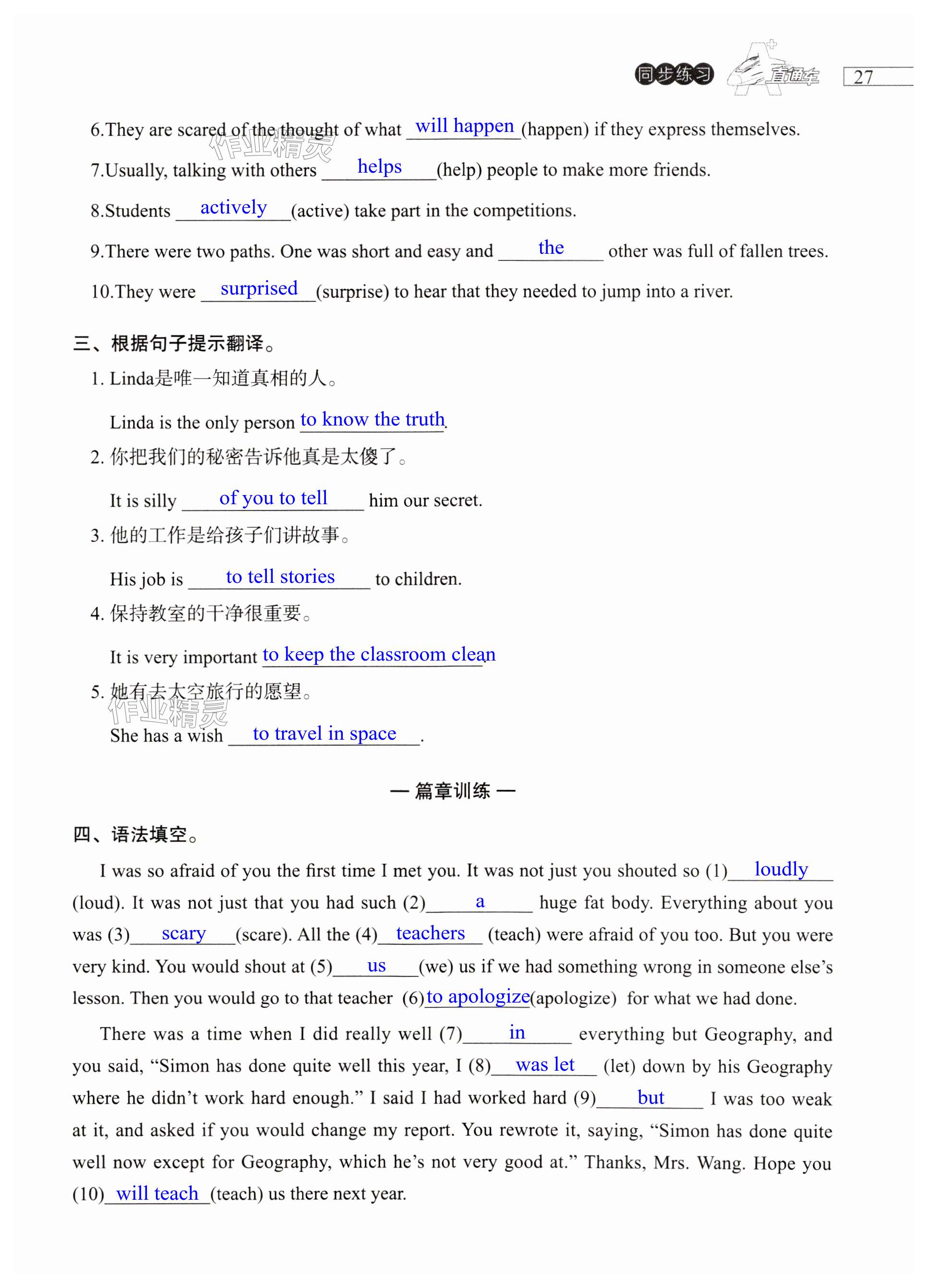 注:目前有些书本章节名称可能整理的还不是很完善,但都是按照顺序排列的,请同学们按照顺序仔细查找。练习册 2024年A加直通车同步练习九年级英语全一册沪教版 答案主要是用来给同学们做完题方便对答案用的,请勿直接抄袭。